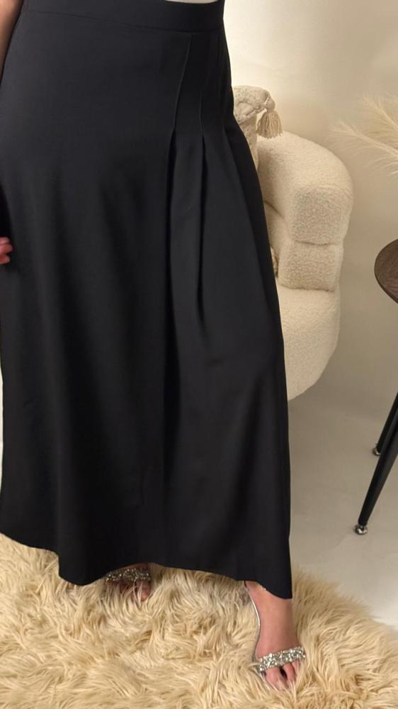 تنورة كريب اسود طويل كلوش عصرية مزينه بكسرات من الجانب