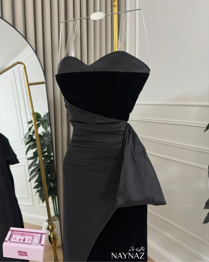 فستان سهرة فخم ناي ناز تألّقي بأناقة راقية مع هذا الفستان الأسود الساحر الذي يدمج بين القصّة الكلاسيكية واللمسة العصرية في تصميم يخطف الأنظار يتميّز الفستان بتصميم بصدر على شكل قلب بدون أكتاف، يمنح مظهراً أنثوياً ناعماً يبرز منطقة الرقبة والكتفين بإطلالة جذابة.